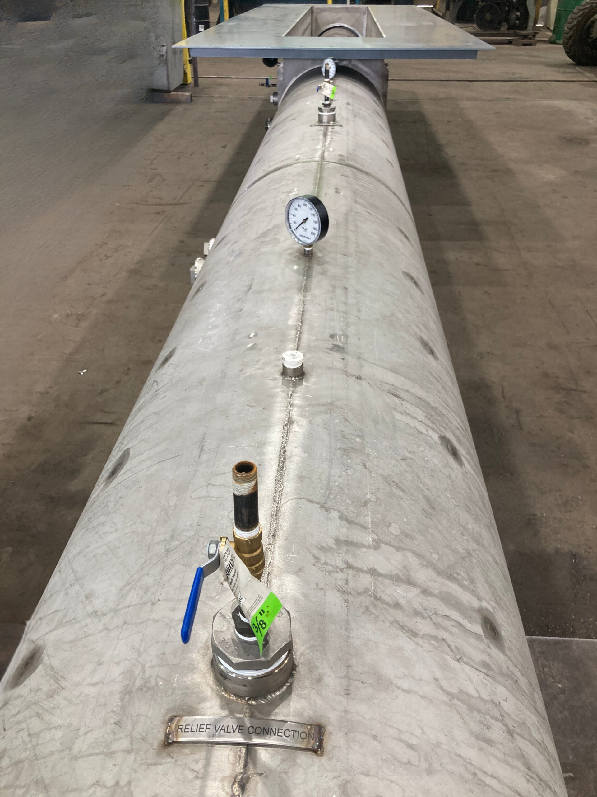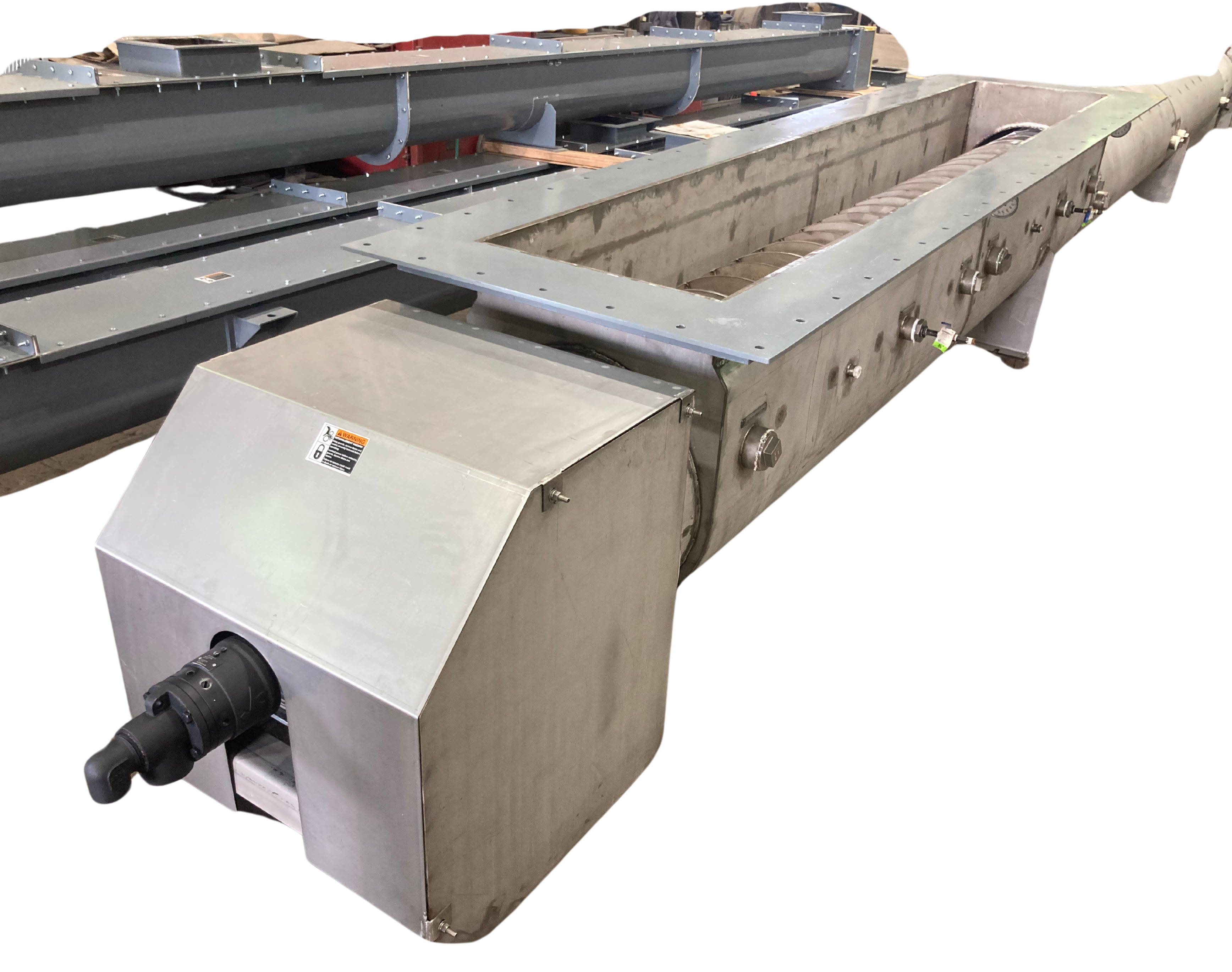 To ensure cost-effectiveness, we designed a system that achieved the necessary cooling while maintaining the classification of a “non-coded” vessel. (In this context, if the pressure within the system exceeds 15 psig, it would require fabrication as an ASME code-stamped vessel, significantly increasing costs.) The screw conveyor incorporated several unique design features to meet the challenges of the application: an oversized pipe to span over 31 feet without excessive deflection, a variable pitch under the extended inlet to promote consistent material flow, and robust ⅜-inch-thick flights for added durability. Additionally, the design included a secondary “stinger” pipe inside the main screw pipe. This feature allowed cooling water to circulate within the screw itself, providing a second layer of heat dissipation to complement the external jacket.
